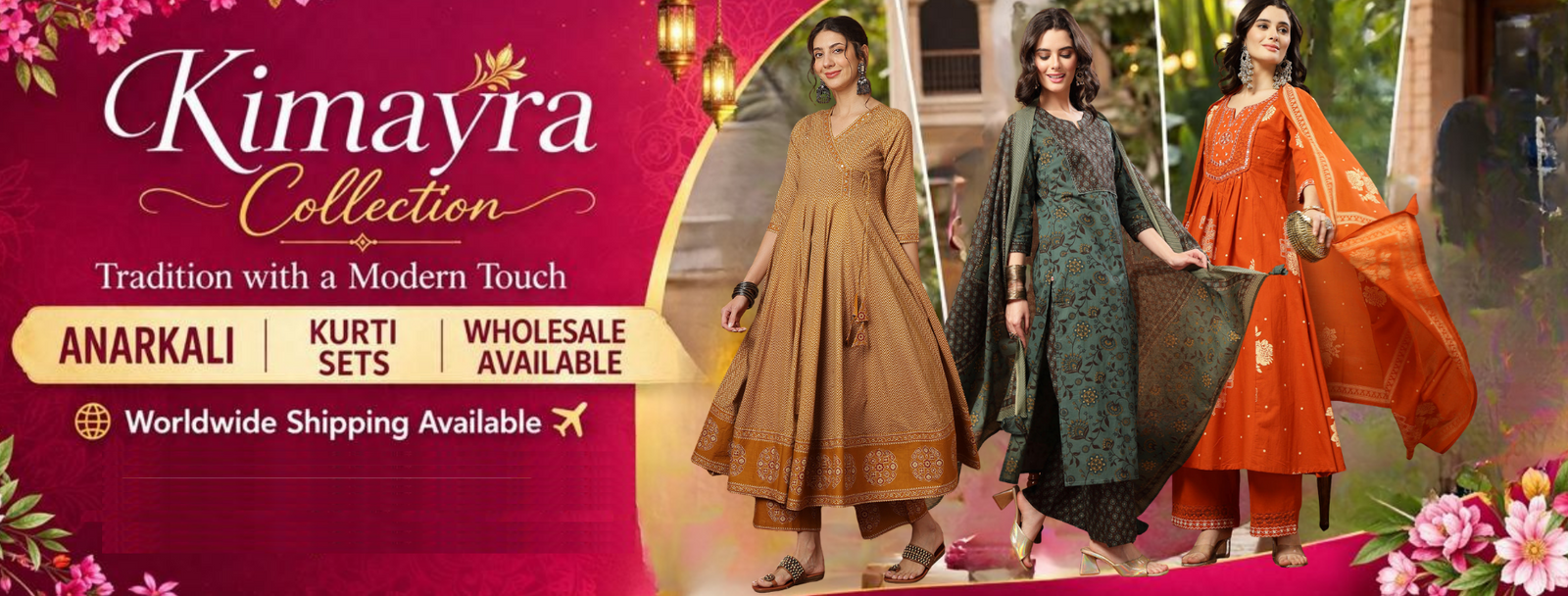 With a wholesale catalogue of 2000+ styles under our leading brands Stylum, Kimayra, Gulmohar Jaipur, Nayo, Nishabd, Glam Roots, Women Click and more, we ensure trendy designs, flawless stitching, and export-grade fabrics. Whether you need cotton or Rayon, Printed or Embroidered daily wear Kurtis, festive Anarkali Kurtis, Kurta Sets, Indo-Western Dresses, Palazzo Sets, or Sarees, we have ready stock and make-to-order options to suit your business needs.