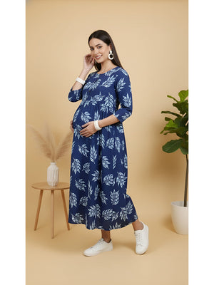 Blue Pure Cotton Maternity Kurta Set With Dupatta
