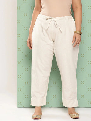 Women Plus Size Cream Pure Cotton Ethnic Trousers