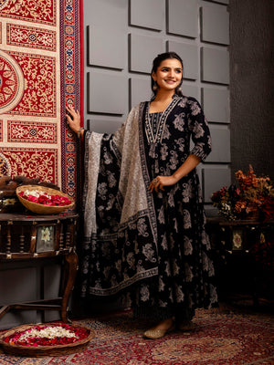 Rayon Printed Kurta With Palazzo & Dupatta Set