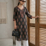 Printed Straight Kurta With Three Quarter Sleeves