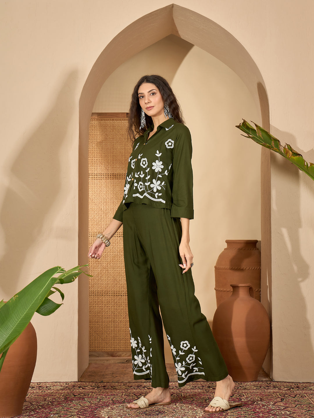 Solid & Embroidered Rayon Co-Ord Set