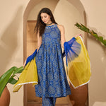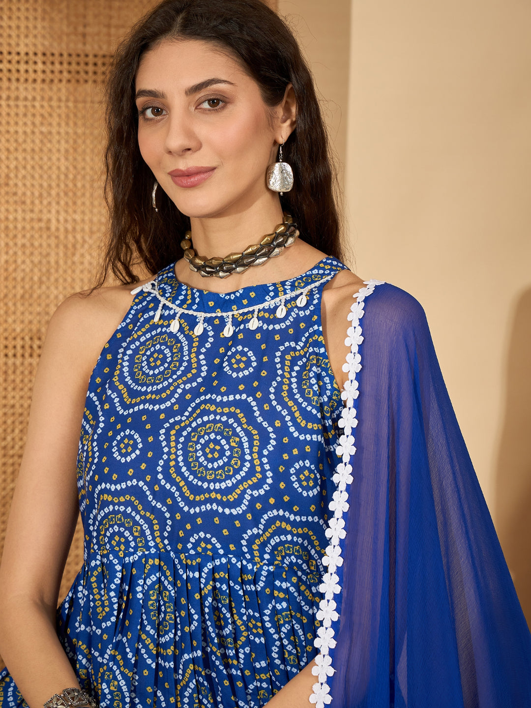 Bandhej Printed Cotton Anarkali Kurta Pant Dupatta Set