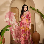 Floral Printed Roman Silk Straight Kurta Pant Dupatta Set