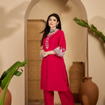 Solid & Embroidered Cotton Flex Straight Kurta Pant Set