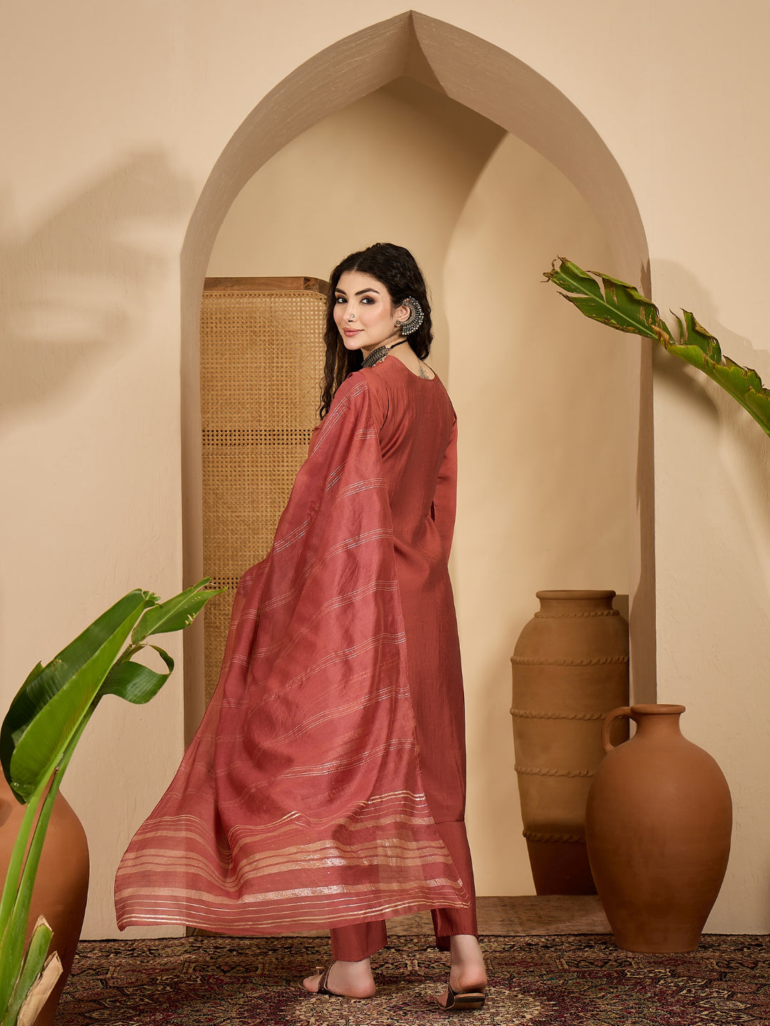Solid & Embroidered Rayon Straight Kurta Pant Dupatta Set