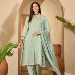 Solid Silk Blend A-Line Kurta Pant Dupatta Set