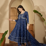 Ethnic Printed Cotton Blend Anarkali Kurta Pant Dupatta Set