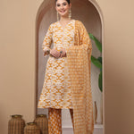 Ethnic Printed Cotton Straight Kurta Pant Dupatta Set