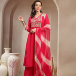 Solid & Embroidered Crepe A-Line Kurta Palazzo Dupatta Set