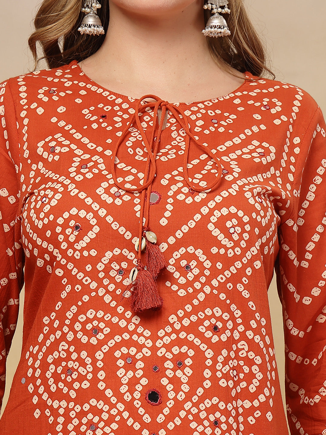 Bandhej Printed & Embroidered Cotton Straight Kurta Pant Dupatta Set