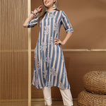 Floral & Striped Printed Poly Rayon A-Line Kurta