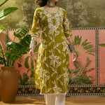Floral Printed & Embroidered Cotton Straight Kurta