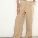 Women Beige Front Pleated Wide Leg Korean Pants