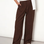 Women Brown Front Pleated Wide Leg Korean Pants