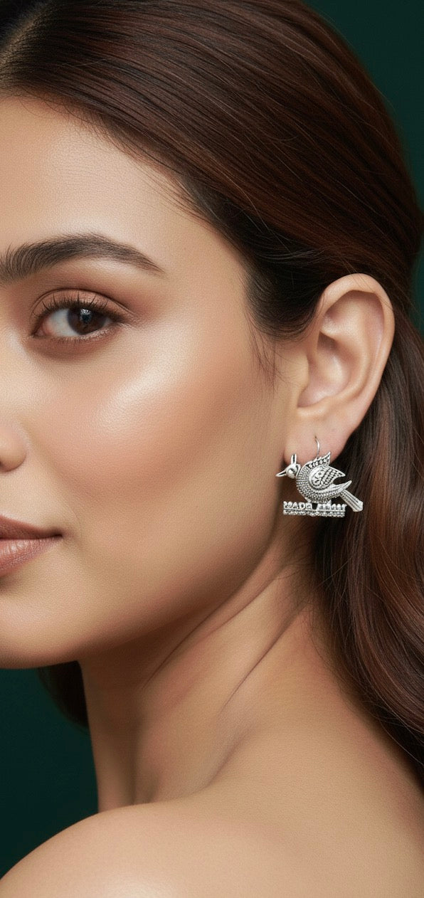 Beautiful Oxidized Bird Pattern Earrings