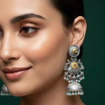 Women Oxidised Peacock Jhumka Studded With Stones