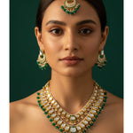 Women Emerald Kundan Necklace With Earrings & Mang Tika