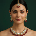 Women Kundan Necklace With Earrings & Mang Tika