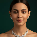 Women Floral Daimond Necklace With Earrings