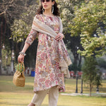 Beige linen A-Line Sequins Work Have A Lining Kurta Trouser Dupatta Set