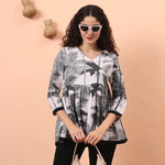 Black And White Cotton Gathered Or Pleated Angrakha Top