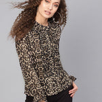 Black Cheetah Cascading Ruffles Shirt