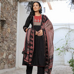 Black Cotton A Line Gathered Or Pleated Kurta Dupatta Set