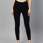 Black Cropped Jeans, in Denim fabric, Unlined, Ankle Length, Slim Fit, Button Closure, Straight Hemline and features Cropped Length