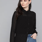 Black Dobby Sheer Boxy Shirt