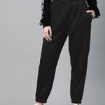 Black Fleece Jogger, in Fleece fabric, Unlined, Full Length , Comfort Fit, Drawstring Closure, Straight Hemline and features I Am Lazy Print At Side