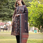 Black Floral Print linen A-Line Have A Lining Kurta Trouser Dupatta Set