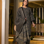 Black Floral Print Piping On Yoke Pakistani Style Kurta With Trousers And Dupatta Set