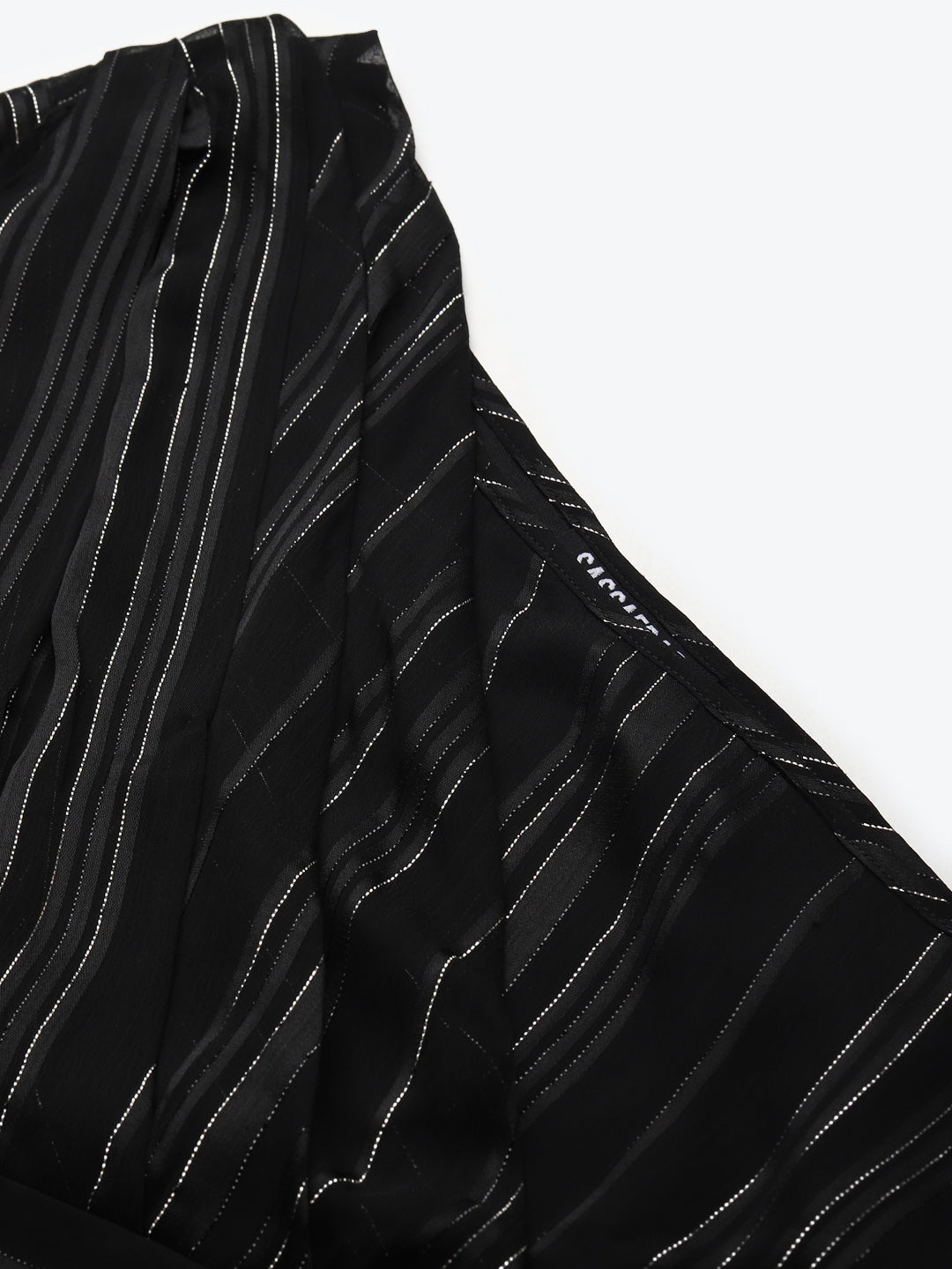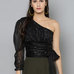 Black One Shoulder Top, in Chiffon fabric, Polyester Lining, Crop Length, Comfort Fit, Zipper Closure, Straight Hemline and features Tie Up Detail At Side