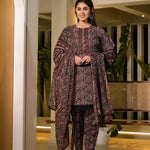 Black Pure Cotton Paisley Print Pakistani Style Kurta And Trousers With Dupatta Set