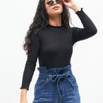 Black Rib High Neck Full Sleeve Top