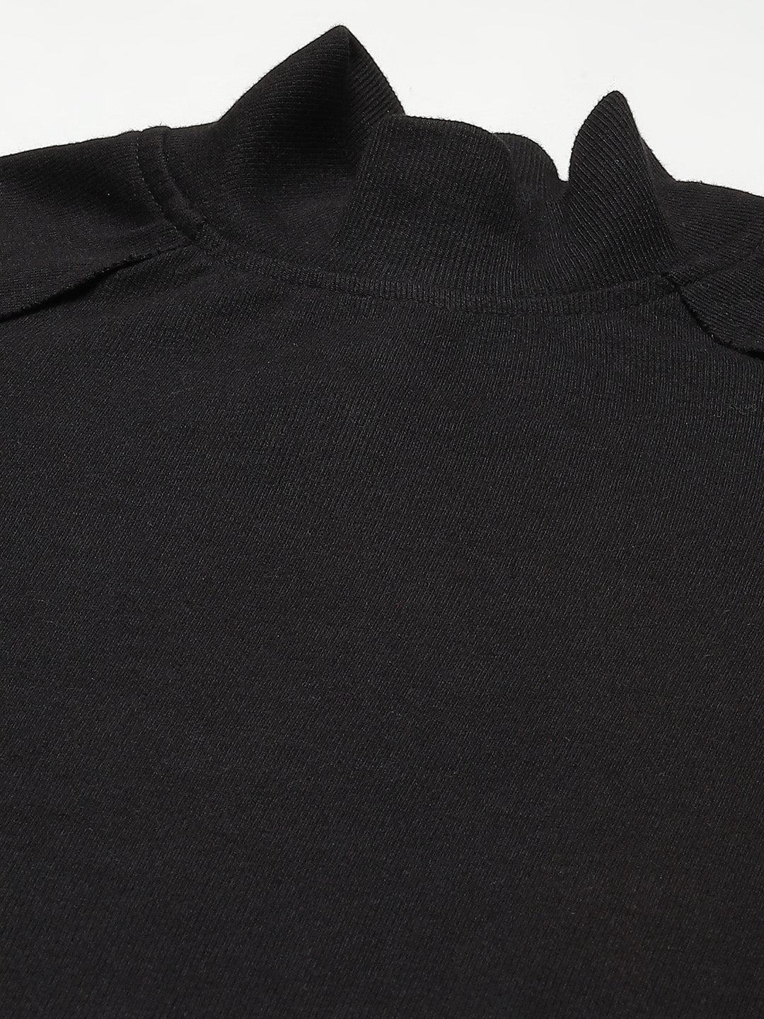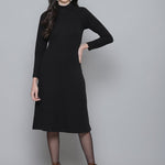 Black Rib Turtle Neck Raglan Sleeve Midi Dress