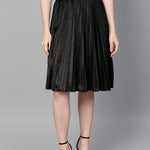 Black Velvet Pleated Skirt