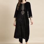 Black Velvet Zari Embroidered Straight Kurta