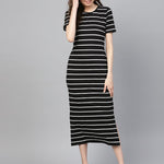 Black White Stripe Maxi, in Cotton Spandex fabric, Unlined, Full Length, Slim Fit, No Closure, Straight Hemline and features Slit at side