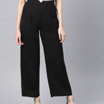 Black Wide Leg Trousers, in Georgette fabric, Unlined, Full Length, Comfort Fit, Zipper Closure, Straight Hemline and features Wide Leg Bottom