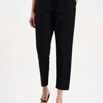 Black Woven Cotton Flex Trousers Slim Fit Regular Pant