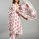 Pink Block Print Handcrafted Cotton Flared Kurta Set