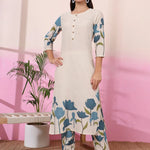 Blue And Cream Cotton Floral Print Straight Kurta Trouser Set