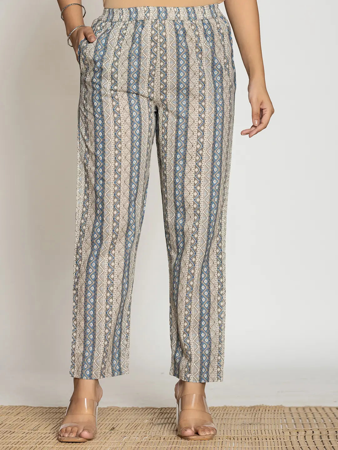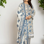 Blue And Off White Cotton Pakistani Style Kurta Dupatta Set