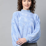 Blue Balloon Sleeve Faux Fur Sweatshirt, in Fur fabric, Unlined, Regular Length, Comfort Fit, No Closure, Straight Hemline and features Balloon Sleeve Detail