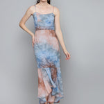 Blue & Brown Tie-Dye Print Strappy Maxi