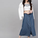 Blue Denim Longline Buttoned Skirt