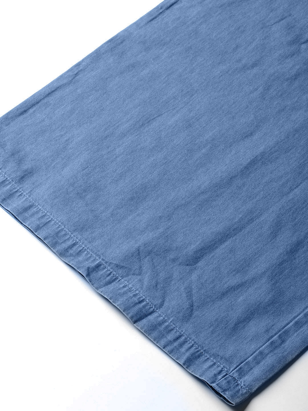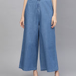 Blue Denim Pants, in Denim fabric, Unlined, Full Length, Comfort Fit, Button Closure, Flared Hemline and features Wide leg Pants