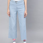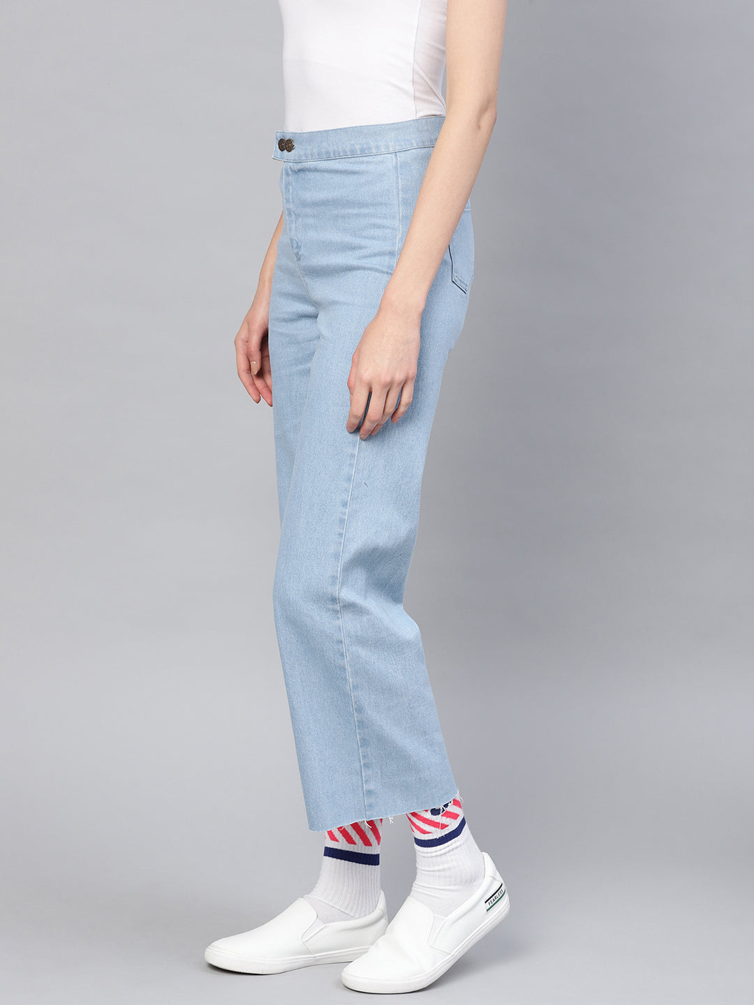 Blue Denim Straight Pants, in Denim fabric, Unlined, Full Length, Comfort Fit, Button and Flyer, Straight Hemline and features Raw Look Hem Line
